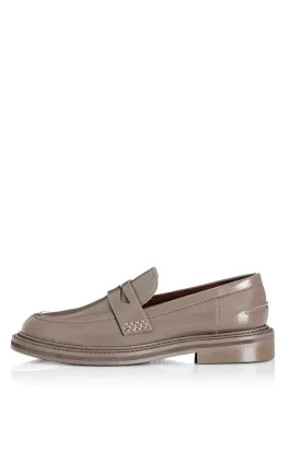These Finn Taupe Box shoes boast a timeless loafer design, perfect for those seeking a stylish yet refined look. These shoes are the ultimate choice for elevating any outfit.